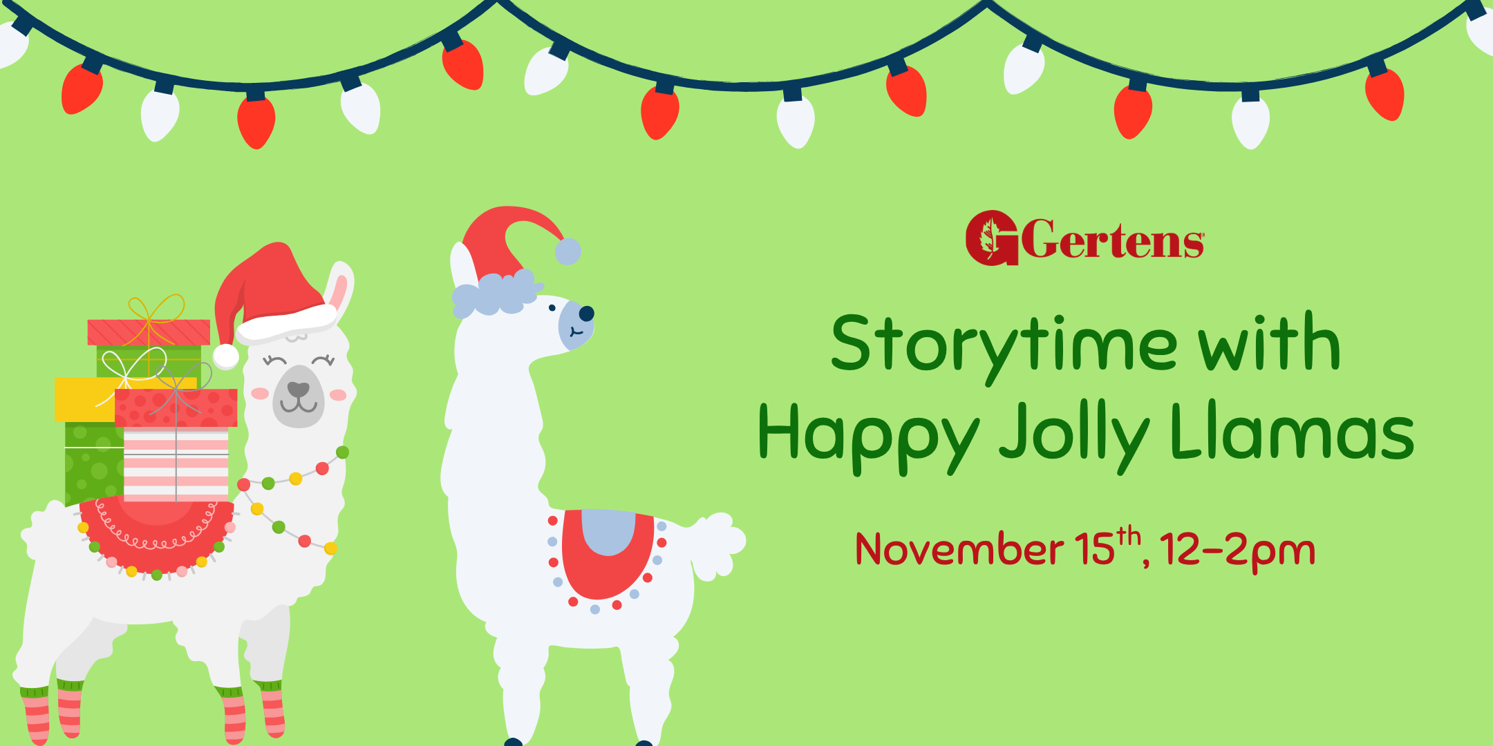 Join Gertens for story time at 1pm as we bring your child's favorite bedtime story to life; Llama Llama Red Pajama. Gertens also welcomes Dill and Pickles from Happy Jolly Llamas who will join us at Storytime; yes, real, live Llamas!