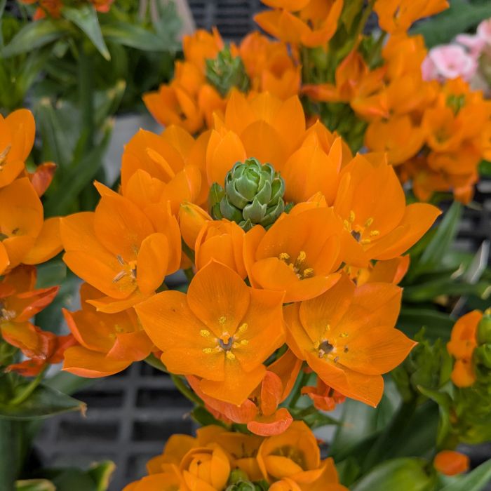 Ornithogalum dubium is a perennial bulb plant type that bursts into a gorgeous bloom of bright tangerine colored flowers. Once the blooming period has finished and the leaves die back, this plant requires a bit of a rest. It will need a cool, dry dormant period and you should limit watering.