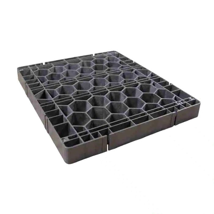 The recommended thickness of stone installed on the SilcaGrate ™ is ¾ inch to 3 inches. Also our SilcaGrate ™ is made from recycled polymers while still being engineered for strength and easy installation.