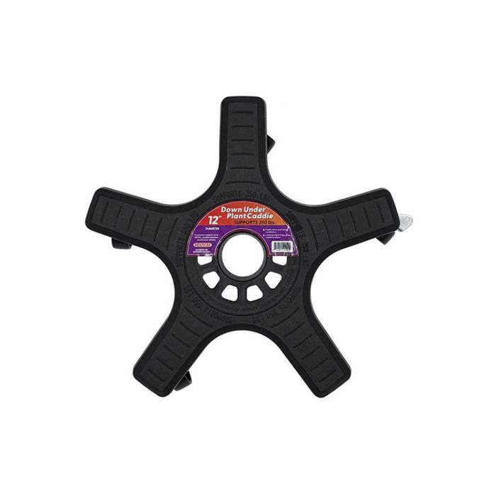 Feel confident about moving your large, heavy pots around your deck, patio, carpet or wooden floor with the Bosmere Down Under Plant Caddie. The Caddie holds up to 350 pounds of weight to accommodate all your heavy planters. The locking wheel keeps it in place. By using the caddie you protect your floors and allow air to flow around your plant to help stimulate the root growth. 12 inch black caddie is made with heavy duty U.V. resistant plastic to withstand the elements and is rustproof and corrosion resistant. 5 high quality nylon and steel wheels for smooth rolling and one locking caster to lock the caddie in place. Holds 350 pounds regardless of planter size or shape. Easy to roll due to the nylon wheels.