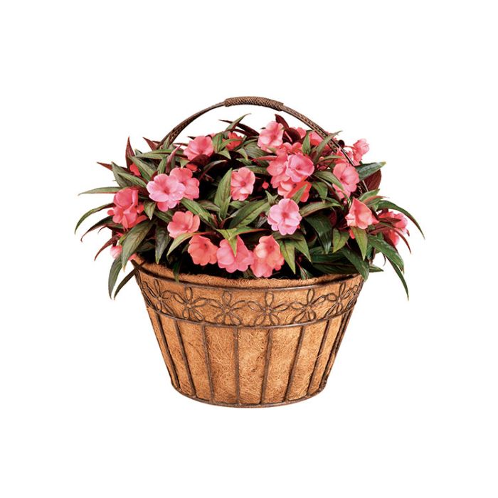 Deer Park Ironworks® Daisy Ribbon Basket Natural Patina Powdercoated Finish - 16in Diam x 10in H Coco fiber liners are included. Replacment liners available BA205-CO.