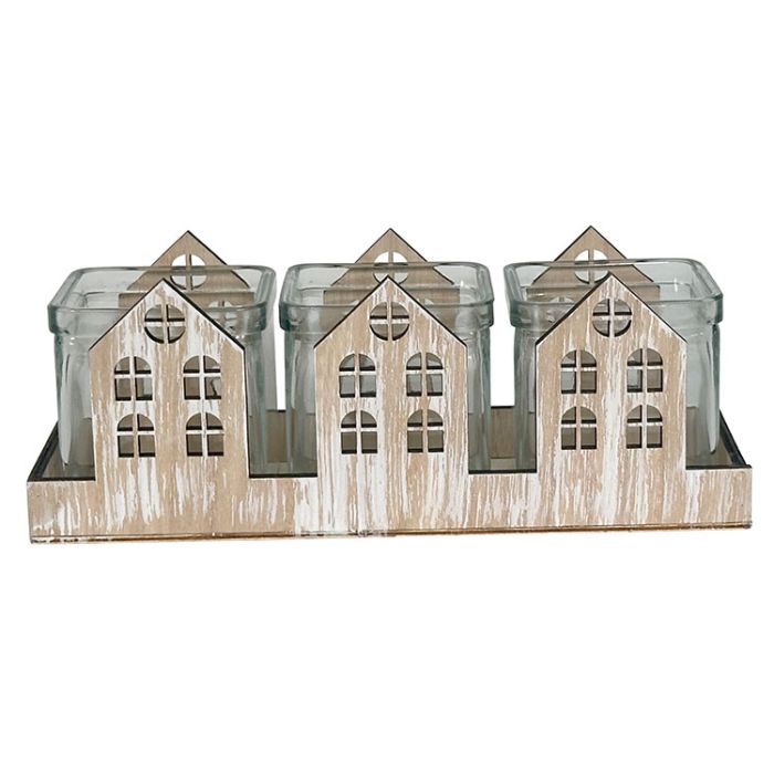 Rectangular 3" Opening x 3.5" H Wood house planter with 3 glass cubes
