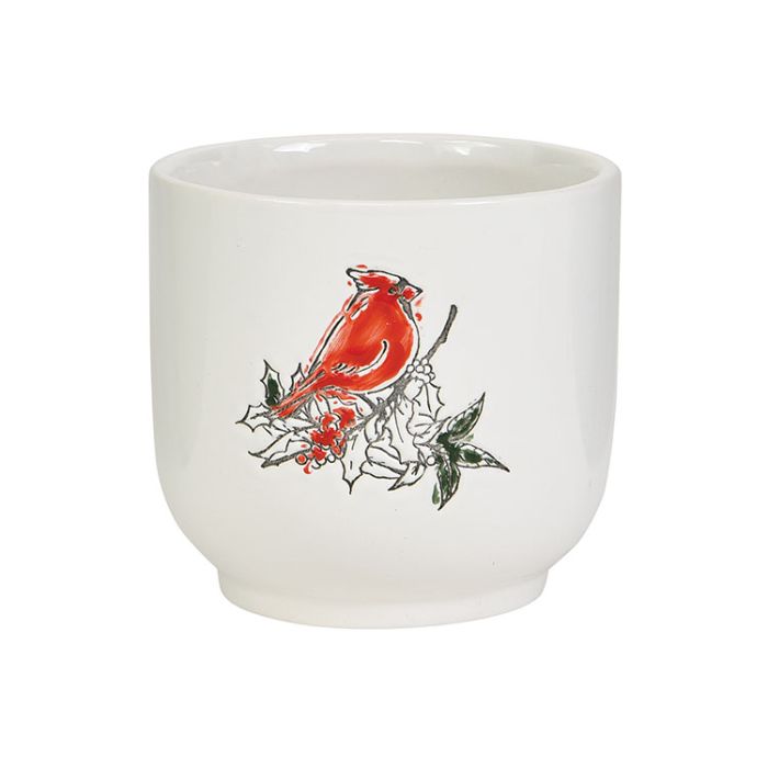 Round 3.5" Opening x 4" H white ceramic pot with cardinal