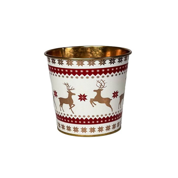 Plus One Imports Leaping Deer, Pot 4" - White, Gold, Red waterproof printed metal with liner