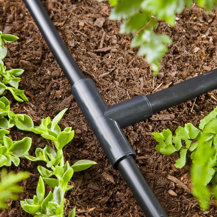 Adds a "T" intersection to your 5/8 in. supply tubing or dripline; Works in a variety of areas, from small to large, flat or sloped, to join distribution tubing in your drip irrigation system. Fits 5/8 in. tubing and dripline with outside diameter of 0.700 in.