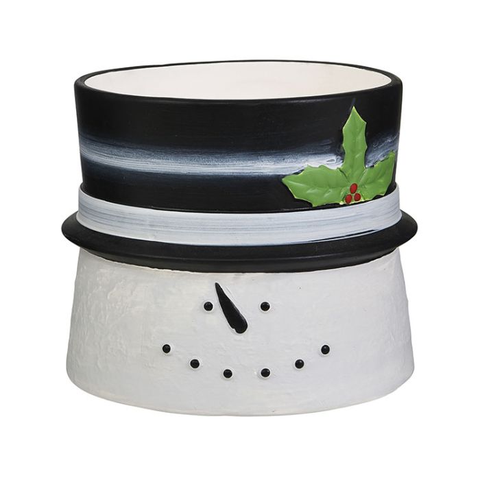Round 5" Opening x 4.5"H Snowman head with hat ceramic pot
