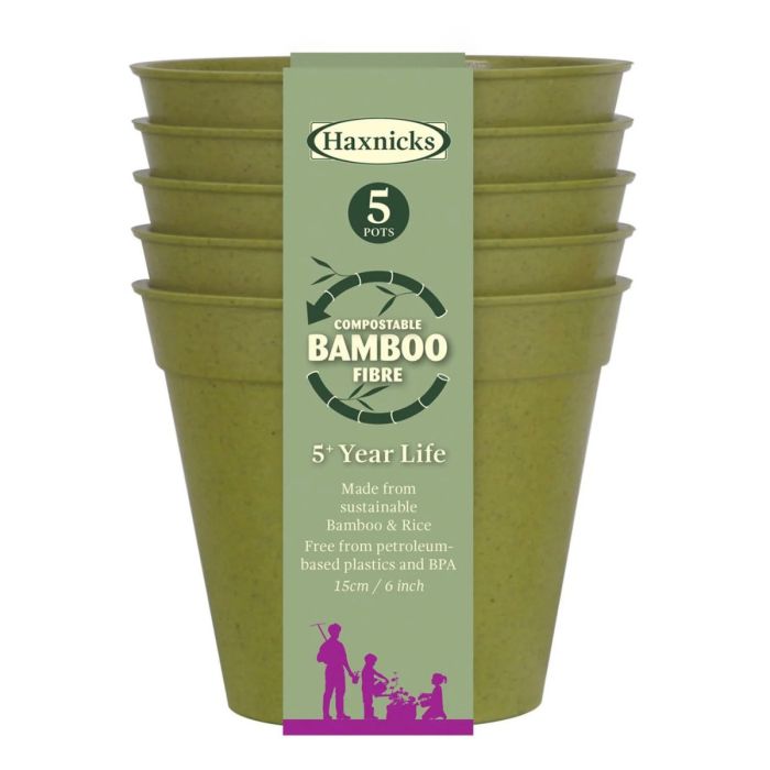 Haxnicks Green Bamboo 6" Pot 5 pk