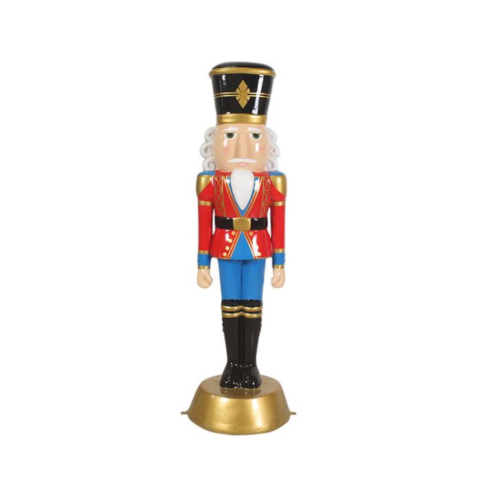 Perfect for decorate your establishment with this life-size 6ft American Christmas Nutcracker statue that your visitors can enjoy. It is ideal for Christmas and other themed displays and will bring foot traffic to your establishment. This item is made of durable fiberglass resin so it can withstand any weather. It is perfect for decoration for any indoor and outdoor spaces.
