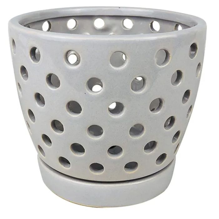 BORDER CONCEPTS Orchid Pot with Attached Saucer 'Pierced' Grey