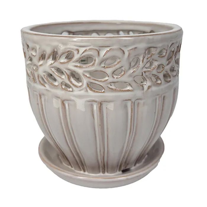 BORDER CONCEPTS Orchid Pot with Attached Saucer 'Lace Ring' Moonstone