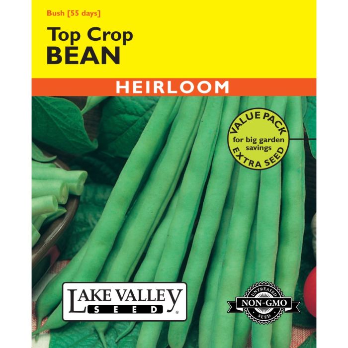 Space-saving and prolific plants offer slender, stringless emerald-green pods. Meaty, flavorful taste served fresh. Top Crop is the best you can grow for freezing and canning. It was an All America Selections Gold Medal winner in 1950. Very disease resistant.
