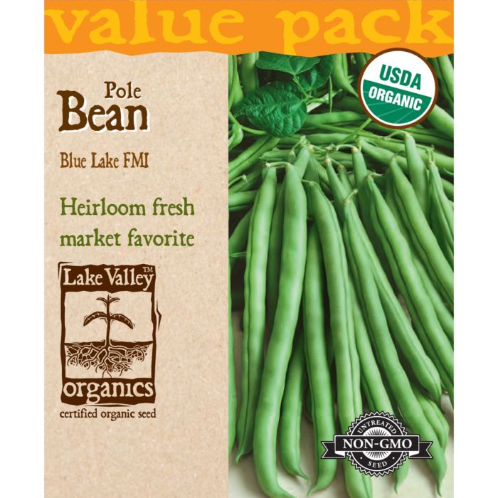 Phaseolus, Stringless Beans (Pole) 'Blue Lake FM1' Organic Heirloom Value Pack