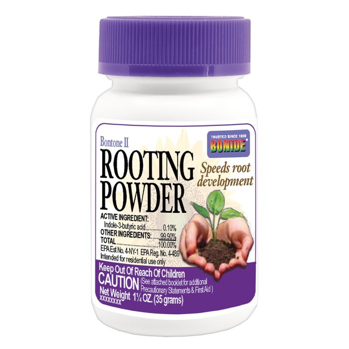 BONIDE Bontone Rooting Powder is a ready to use IBA root stimulator that speeds root development of cuttings, corms, bulbs and roots of plants. It can be used on many types of plants including ornamentals, vegetables, fruit trees and berries. It's an easy inexpensive way to multiple your plant supply.