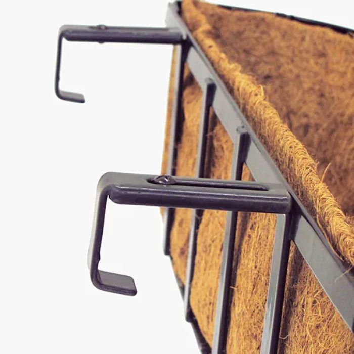7" wide, 7" deep, 30" long. Elegant flat bar construction. Completed with coconut liner. Durable vinyl coating. Coco Liner Included.