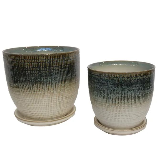 BORDER CONCEPTS Beatrice Etched Planter with Attached Saucer 'Ocean'