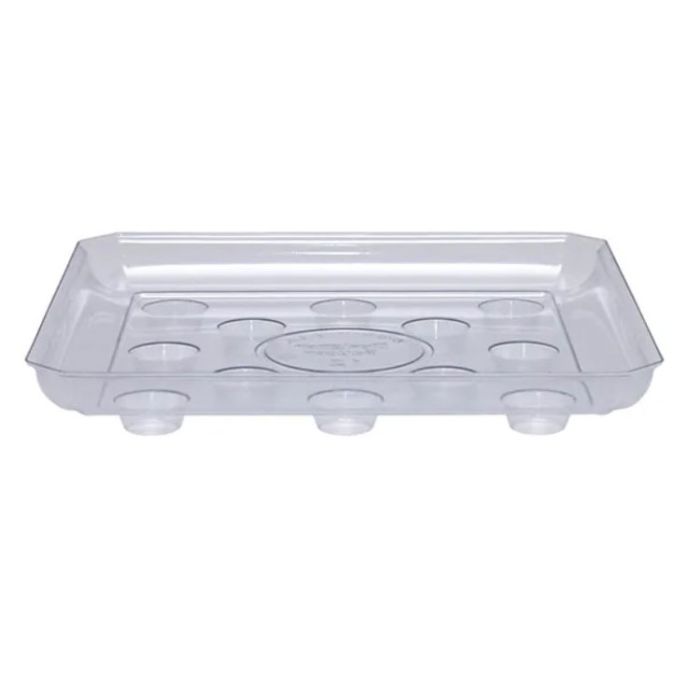 Extra strong heavy gauge clear plastic. Protects carpets. Protects floors. Guards against moisture stains. Allows airflow under plants. Heavy footed saucers. Made in the USA.