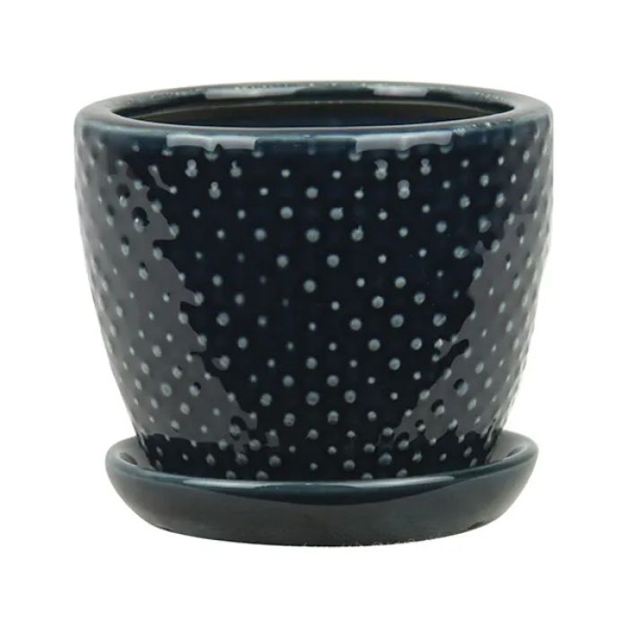 BORDER CONCEPTS Classic Dot Planter with Attached Saucer 'Ebony'