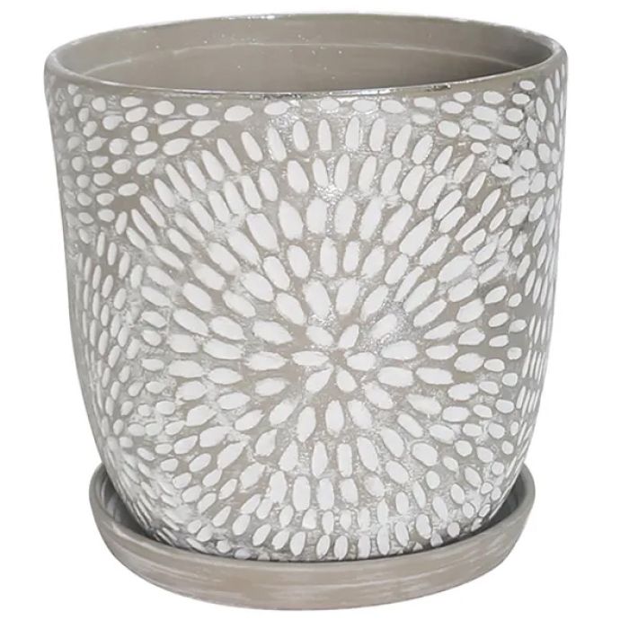BORDER CONCEPTS Corinne Painted Planter with Attached Saucer 'Silver Wash'