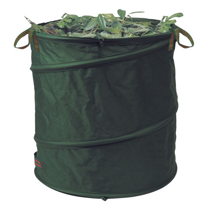 Make quick work of yard cleanup with the Bosmere Hard Base Pop-Up Bag. Engineered for strength and stability, this bag features a tough, woven PVC coated polyester material and a supportive hard base, perfect for handling heavy garden waste. The heavy-duty webbing handles and binding ensure reliable transport, while the spring steel design allows it to effortlessly pop up and stay open. Strong snap buckles provide secure closure and easy flat storage. The washable inner surface adds to its practicality. Available in dark green. The Large size offers a substantial 18-inch diameter by 27-inch height, providing a large 5.7 cubic feet of capacity.