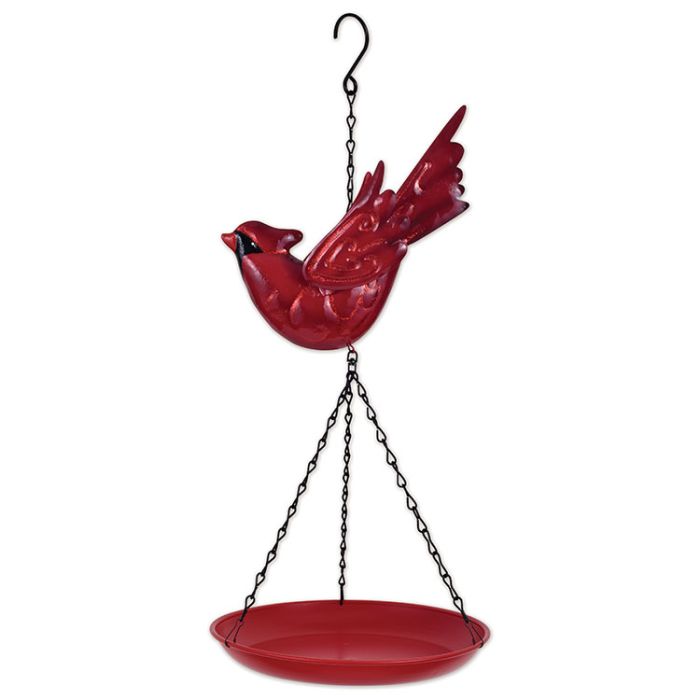 This wonderful cardinal Bird Feeder has been a holiday favorite for years. As known, Cardinals are a symbol of faith and warmth with their bright red color in the dreary days of winter. This Cardinal feeder features an 8” metal dish to place your feed or fruit. Easy clean with mild soap & water. Artisan handcrafted in metal & hand painted. Measures approximately: 8.39" x 8.27" x 18.9"