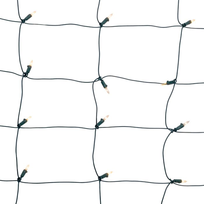 Lighted Dimensions: 4 x 6 ft. Bulb Type: T5 Mini. Number of lights: 100. Bulb Color: Warm White. Cord Color: Green. Connect End to End: Max 40 sets. Rating: UL listed. Usage Indoor/outdoor. Lead/Tail Wire: 12 in. Lead and 4 in. Tail.