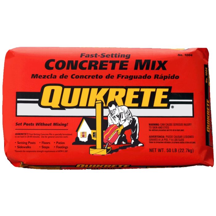 Set Posts Without Mixing! Quikcrete Fast-Setting Concrete Mix is specifically formulated to set hard in 20-40 minutes Use for general concrete work: Setting Post, Steps, Patios, Sidewalks, Floors, Footings.