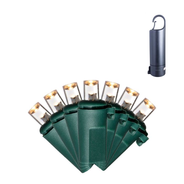 Holiday Bright Lights LED 5mm Warm White 50 Lights Green Cord 16.3FT with Rechargeable Power Bank