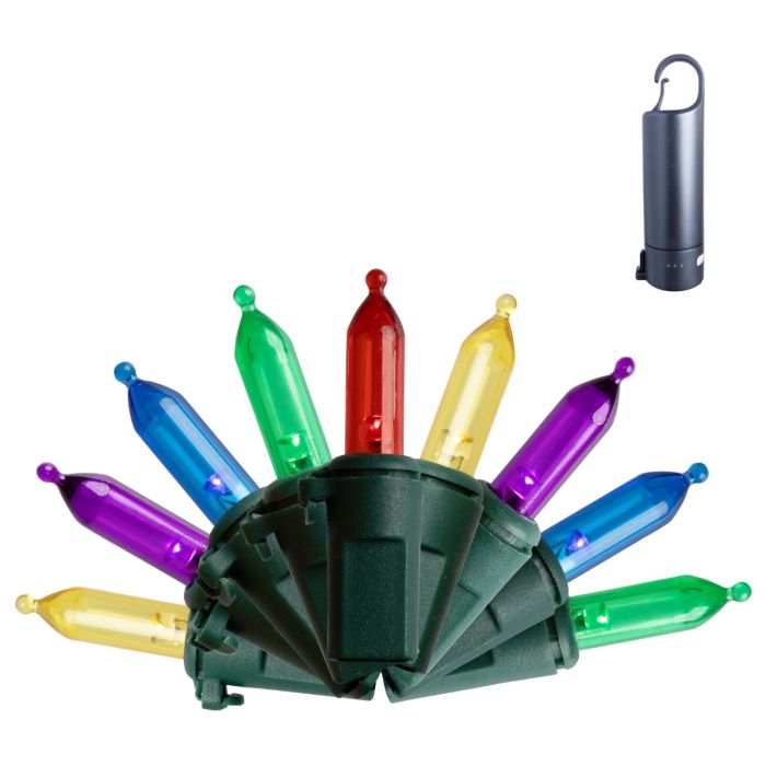 Holiday Bright Lights LED T5 Mini Multi-Colored 50 Lights Green Cord 16.3FT with Rechargeable Power Bank