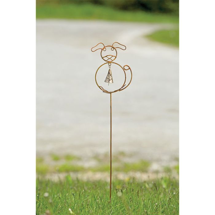 Ancient Graffiti, Flamed Metal Dog with Bell Garden Stake 27IN