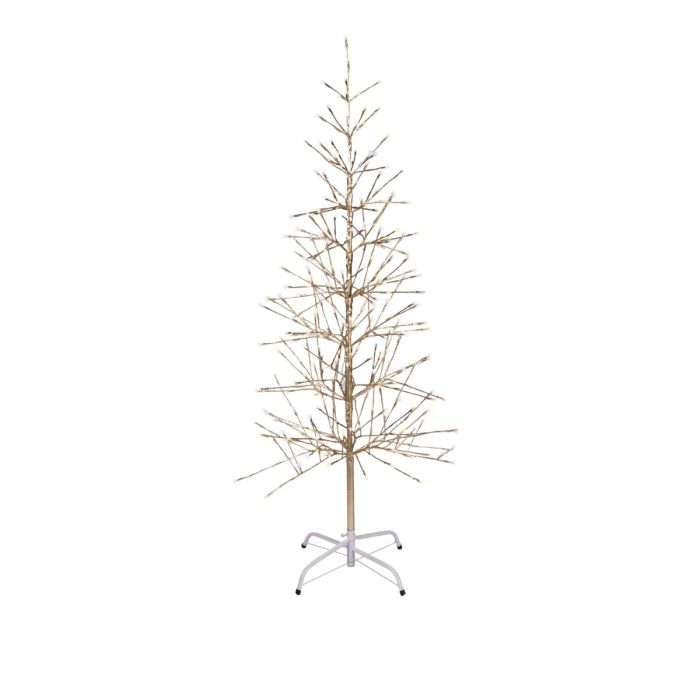 Overall height: 4 ft. height. Number of Bulbs: 224 5mm LED lights. Bulb Color: Champagne (Warm White/Pure White) Double Twinkle. Branch Color: Gold tape. Lead Cord: 10 ft. Usage: Rated for indoor/outdoor use.