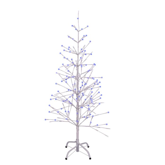 Overall height: 4 ft. height. Number of Bulbs: 224 5mm LED lights. Bulb Color: Blue and Pure White Double Twinkle. Branch Color: Realistic white wood tape. Lead Cord: 10 ft. Usage: Rated for indoor/outdoor use.