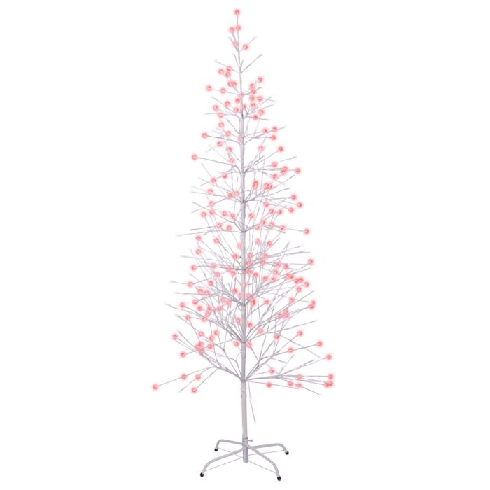 Overall height: 6.5 ft. height. Number of Bulbs: 528 5mm LED lights. Bulb Color: Red and Pure White Double Twinkle. Branch Color: Realistic white wood tape. Lead Cord: 10 ft. Usage: Rated for indoor/outdoor use.