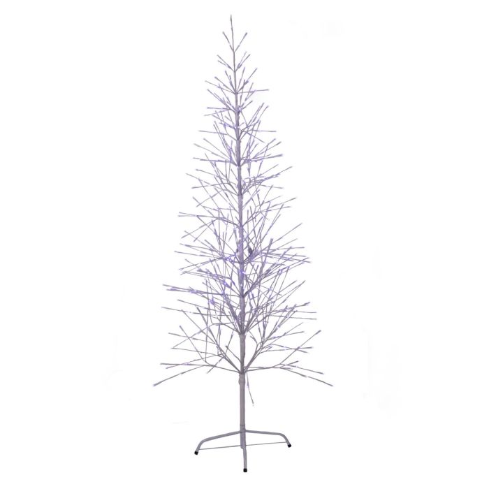 Overall height: 6.5 ft. height. Number of Bulbs: 528 5mm LED lights. Bulb Color: Blue and Pure White Double Twinkle. Branch Color: Realistic white wood tape. Lead Cord: 10 ft. Usage: Rated for indoor/outdoor use.