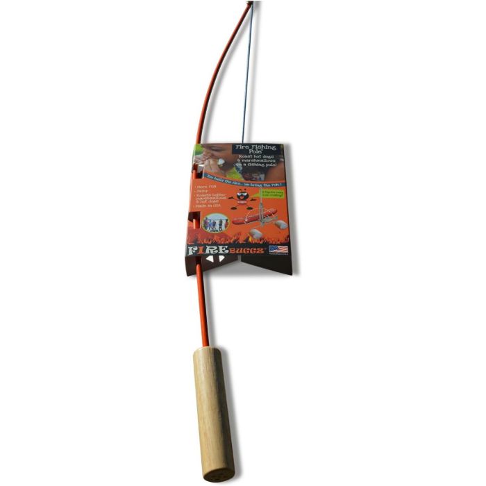 The Fire Fishing Pole from FIREBUGGZ combines the FUN of fishing with outdoor cooking. Featuring a powder coat rod, stainless steel hook, and birch/maple handle for easy handling. With a quick flick of the wrist, just like setting the hook while fishing you can cook food evenly over your campfire or Firebuggz Plug N Play fire pit. The Fire Fishing Pole is perfect for campers, hikers, or those special moments hanging out with your friends and family around the fire. Designed to make roasting hot dogs and marshmallows FUN and easy, the Fire Fishing pole is perfect for making grilling shrimp. stuffed jalapenos, mushrooms, kabobs, and anything else that would be perfect for grilling. You build the fire...We bring the FUN...