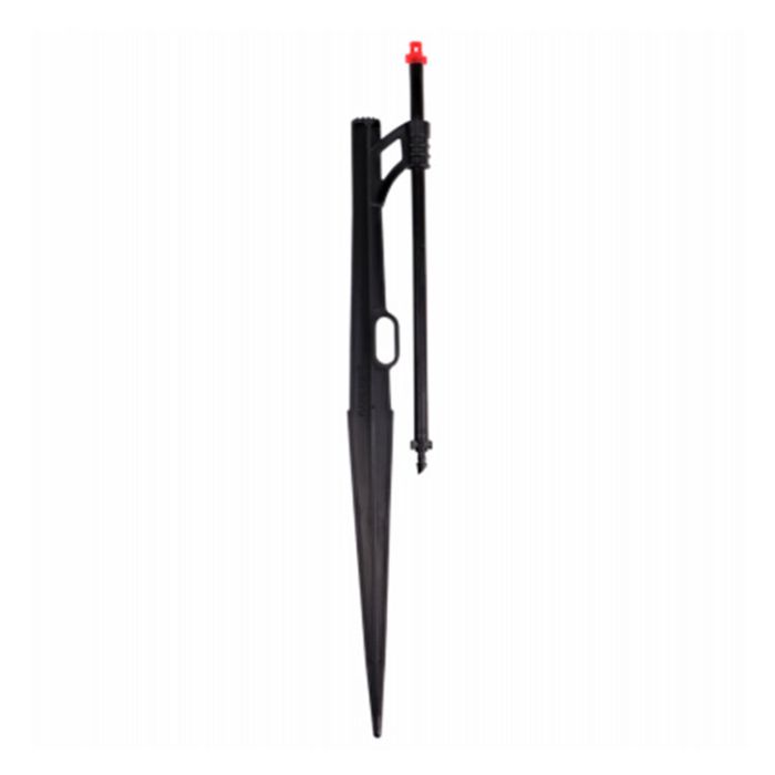 Raindrip Winged Jet Assembly, Full-Circle Pattern, Fan Spray, with 1/4" in. Barbed Inlet on 13" in. Stake with Adjustable Riser. It is a single piece, full circle micro spray jet assembly with 13" green stake, 8" adjustable riser and 1/4" barbed adapter.