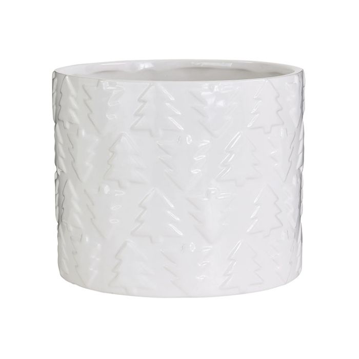 Round 6.5" Opening x 6" H x 6" W ceramic pot embossed with Christmas trees