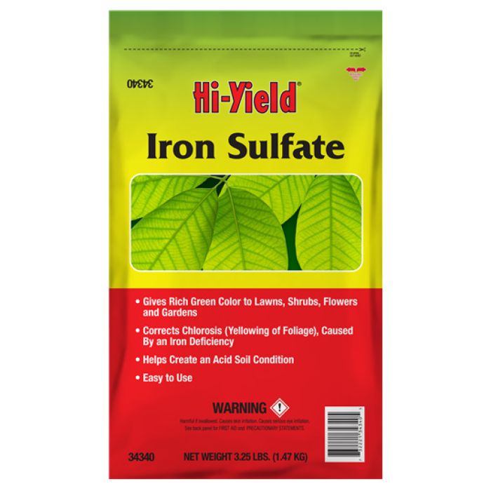 Recommended for the prevention and correction of chlorosis (yellowing of plant leaves) caused by iron deficiency. Aids in creating an acid soil condition. Application Rates: Trees: 1/2 lb. per inch of trunk. Apply around drip line. Shrubs: 1 lb. per 2 ft. of height.