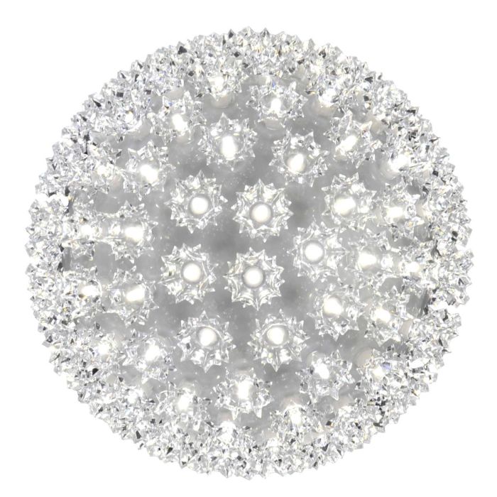 Decorate your trees indoors or out with this beautiful Starlight Sphere. The sphere measures 10" in diameter and contains 150 pure white 5MM lights that are each positioned in their own clear crown to illuminate and reflect color.