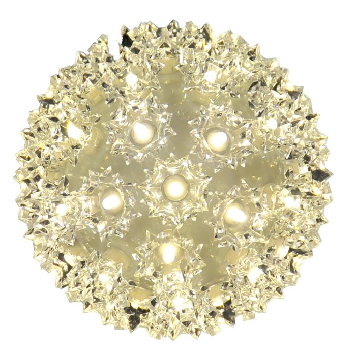 Decorate your trees indoors or out with this beautiful Starlight Sphere. The sphere measures 6" in diameter and contains 50 warm white 5mm lights that are each positioned in their own clear crown to illuminate and reflect color.