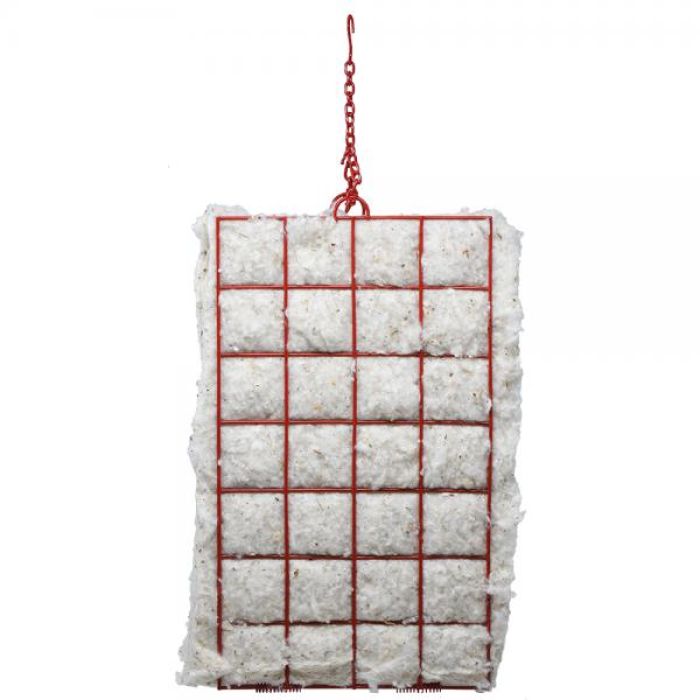 Reuseable Cage with included Nesting material. Hang cage so that Hummingbirds and other birds can easily find the nesting materials they need. Large 1.5" grid surface area allows bird to grab materials easily and helps materials dry out faster. Allows a few Hummingbirds to build a nest at the same time. Hummer Helper takes the place of lichen in lining the tiny nests. Other birds such as Goldfinches and Titmice will also appreciate it.
