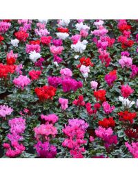 While in bloom, keep the root ball moist. Cyclamen should be kept moist by watering in a tray and allowing the roots to take up the water rather than watering from above the plant which can lead to rotting. Remove yellow leaves and spent flowers.