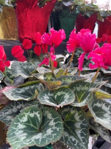 With cyclamen, more leaves equal more flowers! And they can flower for up to 2 months. They prefer cooler temps but like direct light in our climate or bright indirect light. The experts at Gertens say: