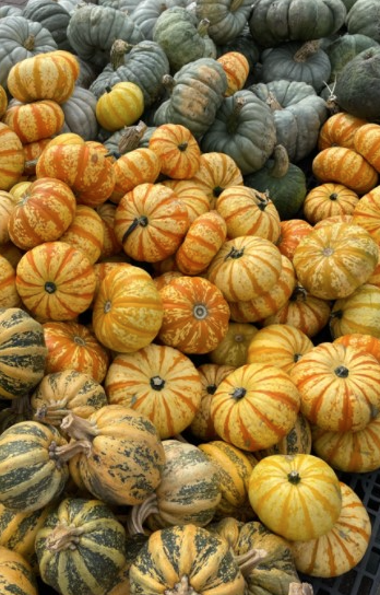 Pumpkins, squash and gourds are from the Curcurbita genus. Very basically, the ones at Gertens are broken down into three main species; c. moschata, c. maxima and c. pepo. Oh, it gets more confusing from there but that's just TMI for the 'Scoop.
