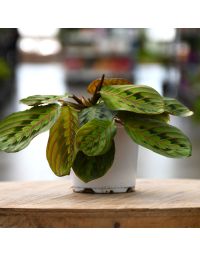Maranta: aka Prayer Plant is a beautiful plant whose leaves fold at night and open during the day. These low growing plants prefers bright indirect light. They don’t like to be chilled, keep them out of drafts. Water when the top inch of soil is dry. Don’t let them sit in water.