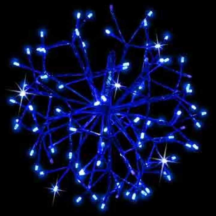 Frame Color: Blue. Bulb Spacing: 4 bulbs per branch. Number of Branches: 32 branches. Cord Color: Transparent. Cord Length: 10 ft. Bulb Color: Blue. Bulb Count: 128 (112 Blue, 16 Cool White Twinkle). Diameter: 20 in. Amps: .2. Connect end to end: N/A. Bulb Type: 5mm LED. Rating: UL listed. Usage: Indoor/outdoor.PROFESSIONAL-GRADE GABRIEL LIGHTS®