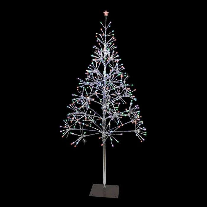 Holiday Bright Lights LED Shimmering Tree Multi-Colored Twinkle 380 Lights Silver Branches 4.5FT