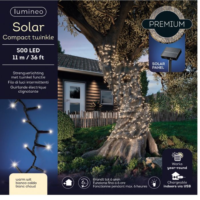 Lumineo Solar Compact Lights, Warm White, 500 Lights
