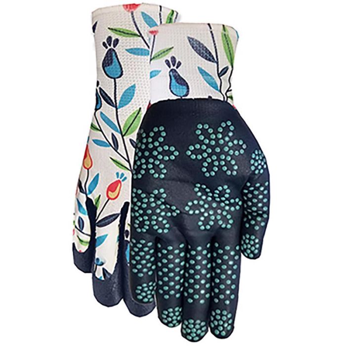 Midwest Quality Gloves Max Grip Spandex/Foam Nitrile Floral Multicolored Gardening Gloves, Small