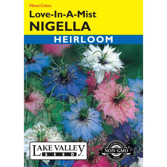 Best planted outdoors. Nigella does not transplant well. Select a cool location with filtered shade to full sun. Sow in early spring right after last frost. Keep young plants evenly moist and make successive sowings for continuous flowers. Flowers may be pressed and dried for craft use. Uncut flowers will turn to lovely light brown oval seed pods that are prized for dried arrangements.