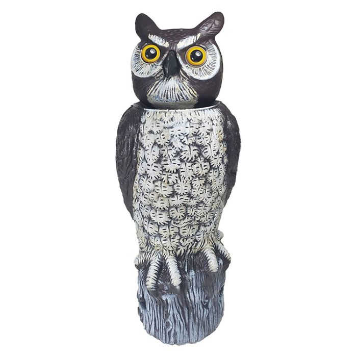 FEARSOME GARDEN OWL DECOY WITH ROTATING HEAD: The extremely detailed owl statue combined with the 360-degree rotating head and piercing big eyes will strike fear into any bird or pest, and keep your garden or patio pest and bird-free.